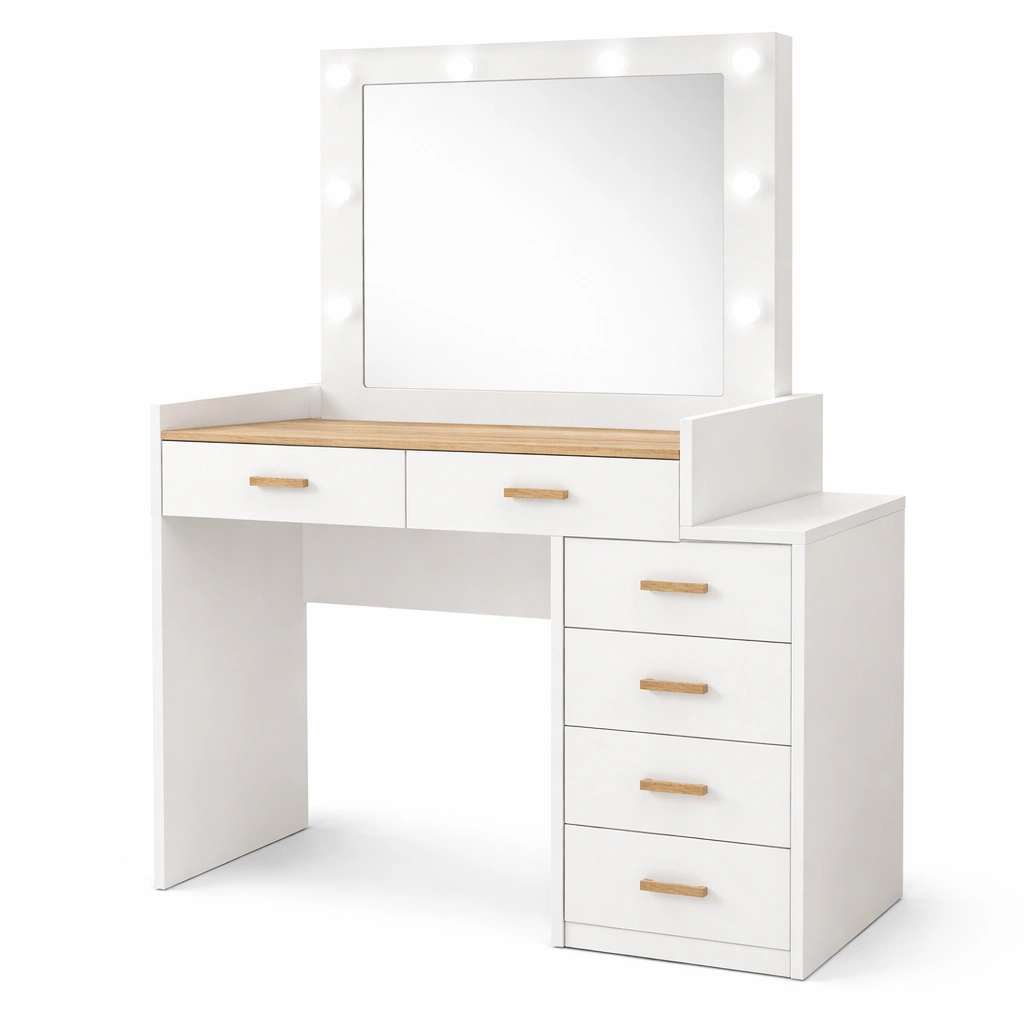 Tocador de MDF con espejo LED y 5 cajones blanco