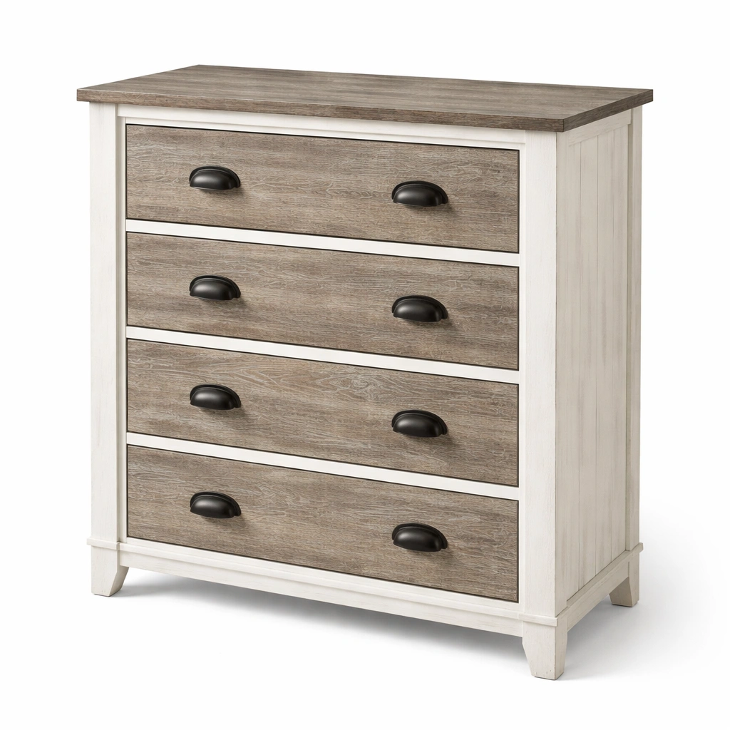 4 cajones con asas de metal negro.